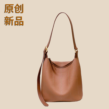 Tas wanita kulit asli, tas Tote kasual serbaguna ember kapasitas besar gaya malas wanita kulit asli baru 2024