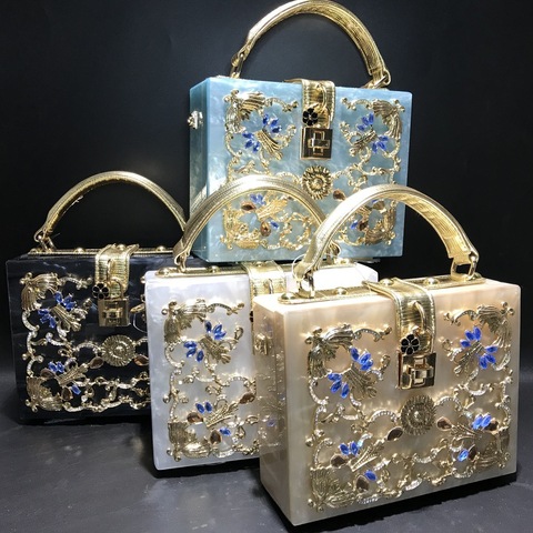 아크릴 저녁 가방 지속적으로 빈 금속 조각 다이아몬드 박힌 핸드백 한 어깨 비스듬한 뒤 여성용 가방